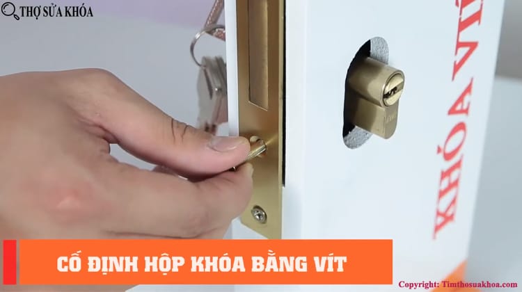 Bước 1: Lắp ổ khóa mới vào trong cửa, vặn vít chặt lại để cố định